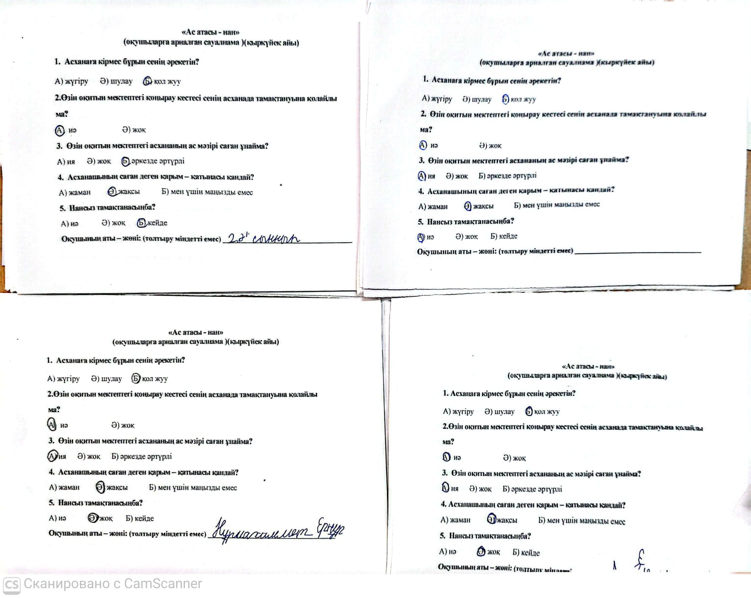 Желтоқсан "Дұрыс тамақтана білейік" тақырыбындағы оқушылардан алынған сауалнамалар