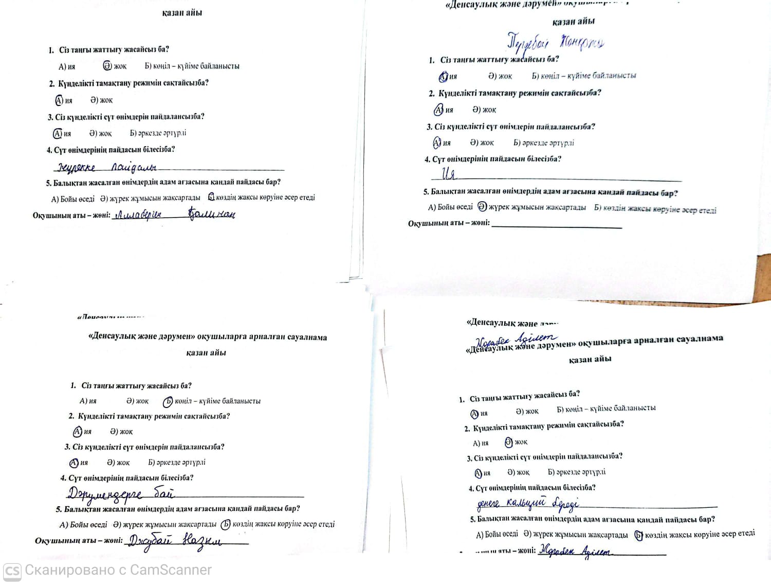 Желтоқсан "Дұрыс тамақтана білейік" тақырыбындағы оқушылардан алынған сауалнамалар