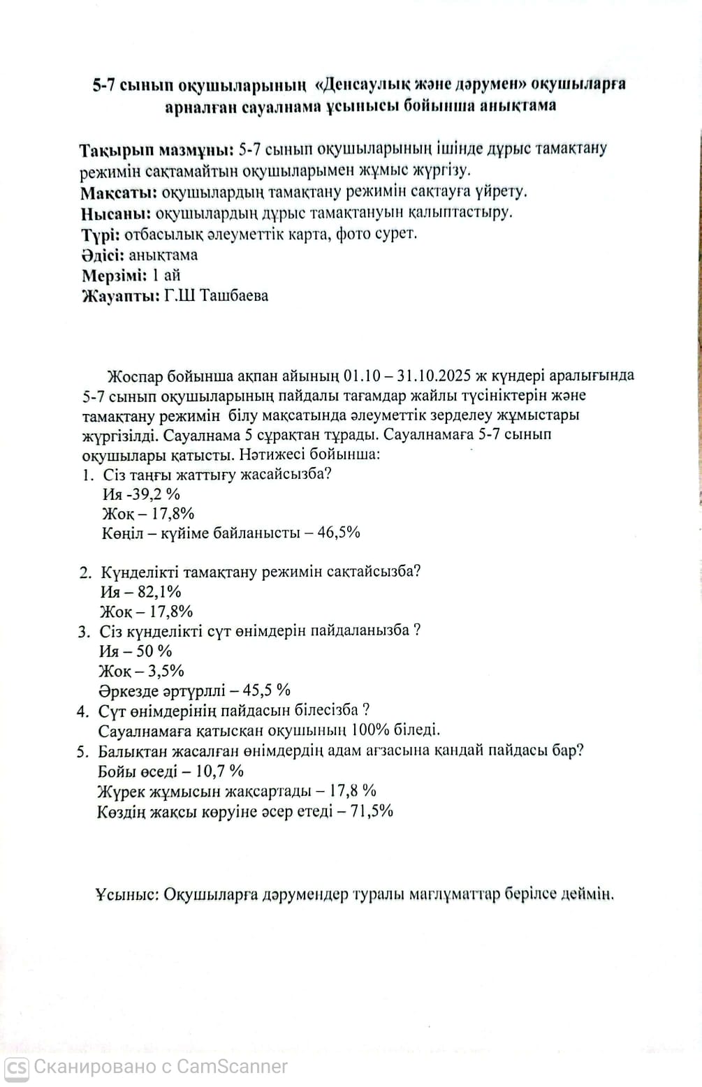 "Дұрыс тамақтана білейік" тақырыбындағы сауалнамалар. Қазан айы 2025-2026