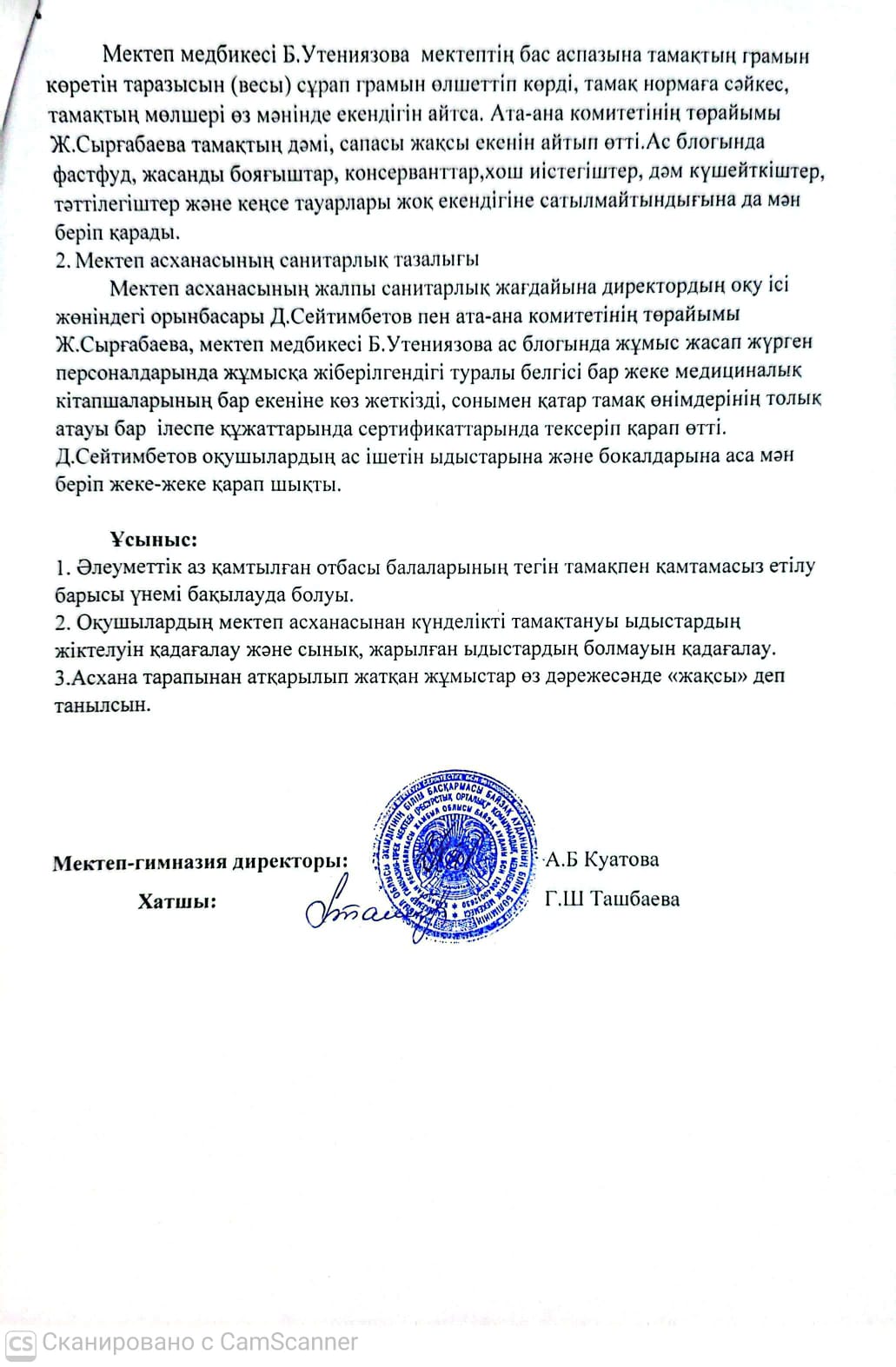 Тамақтану сапасын бақылау бойынша бракераж комиссиясының жұмысы.Желтоқсан айы