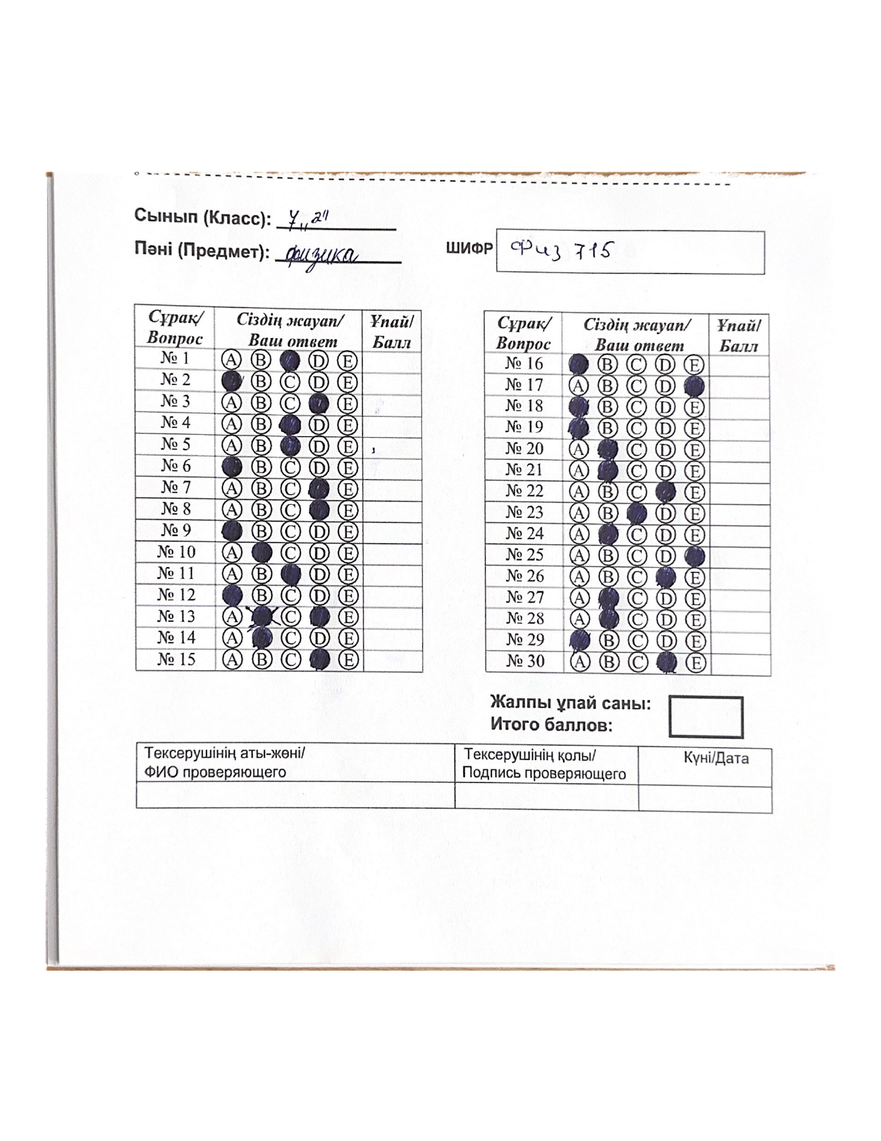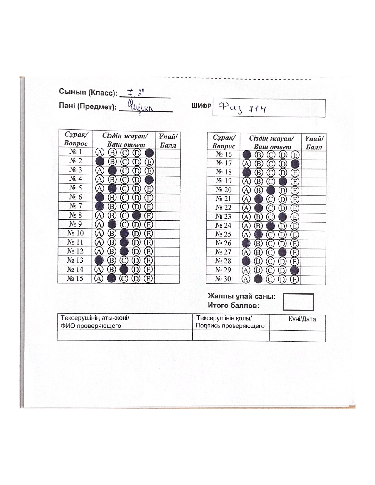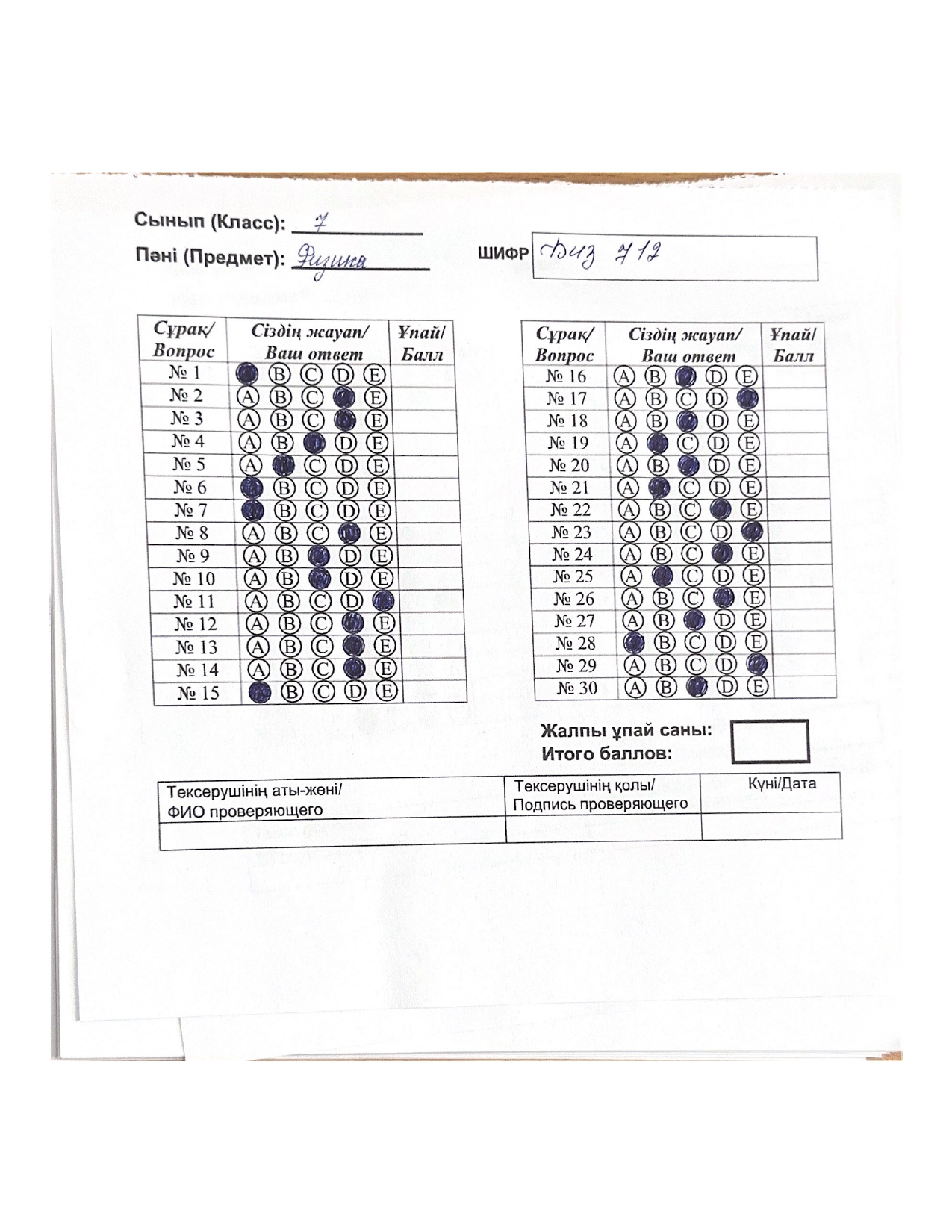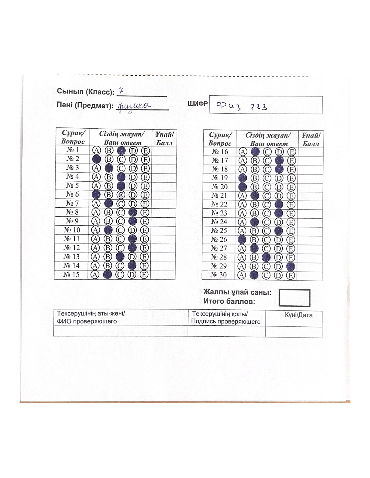 Жалпы білім беретін пәндер бойынша республикалық олимпиаданың аудандық кезеңі жаратылыстану бағыты 7 сынып физика
