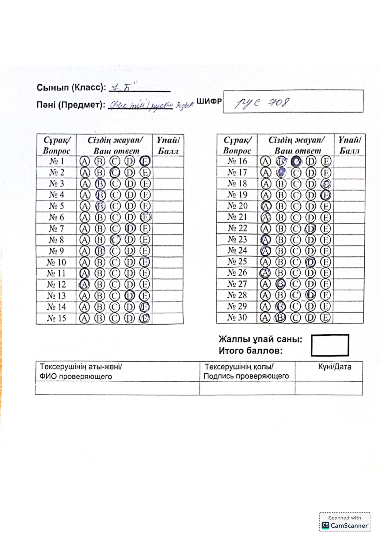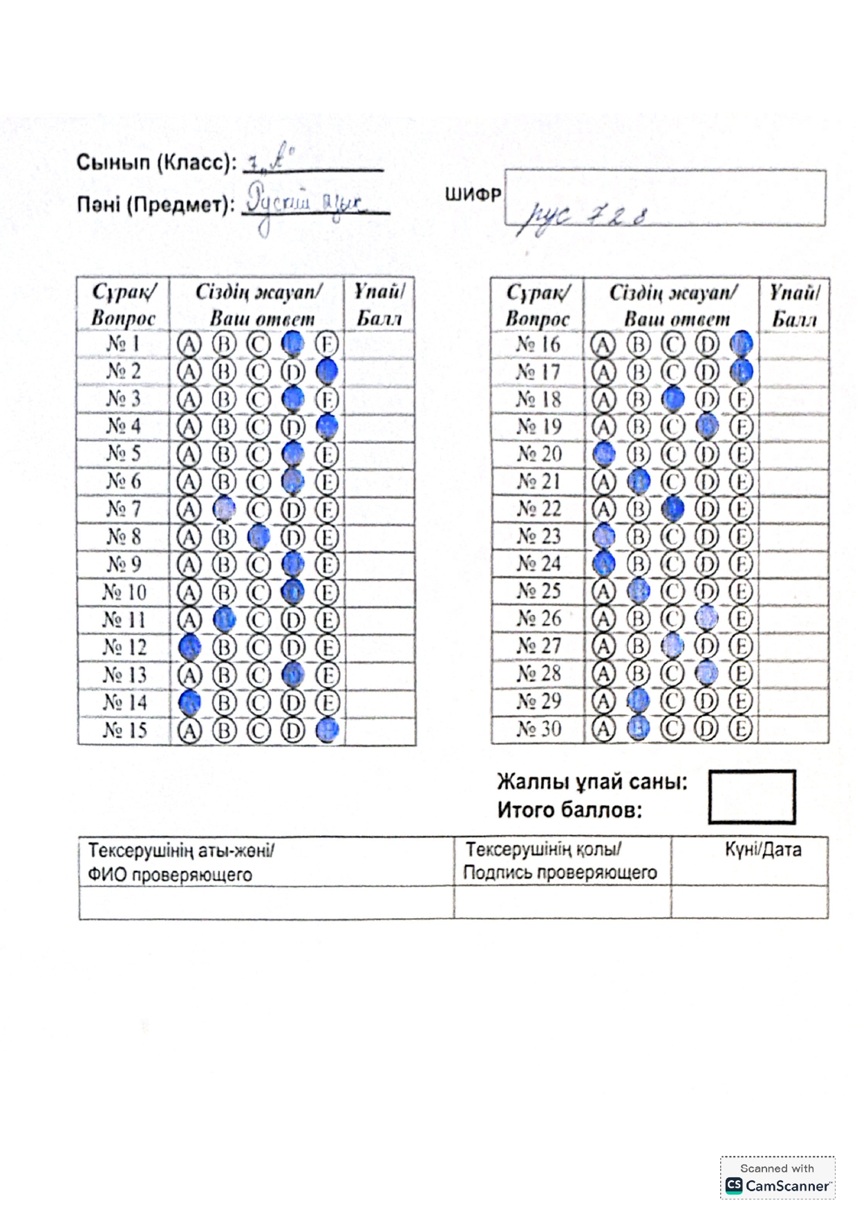 Жалпы білім беретін пәндер бойынша республикалық олимпиаданың аудандық кезеңі гуманитарлық бағыты 7 сынып орыс тілі