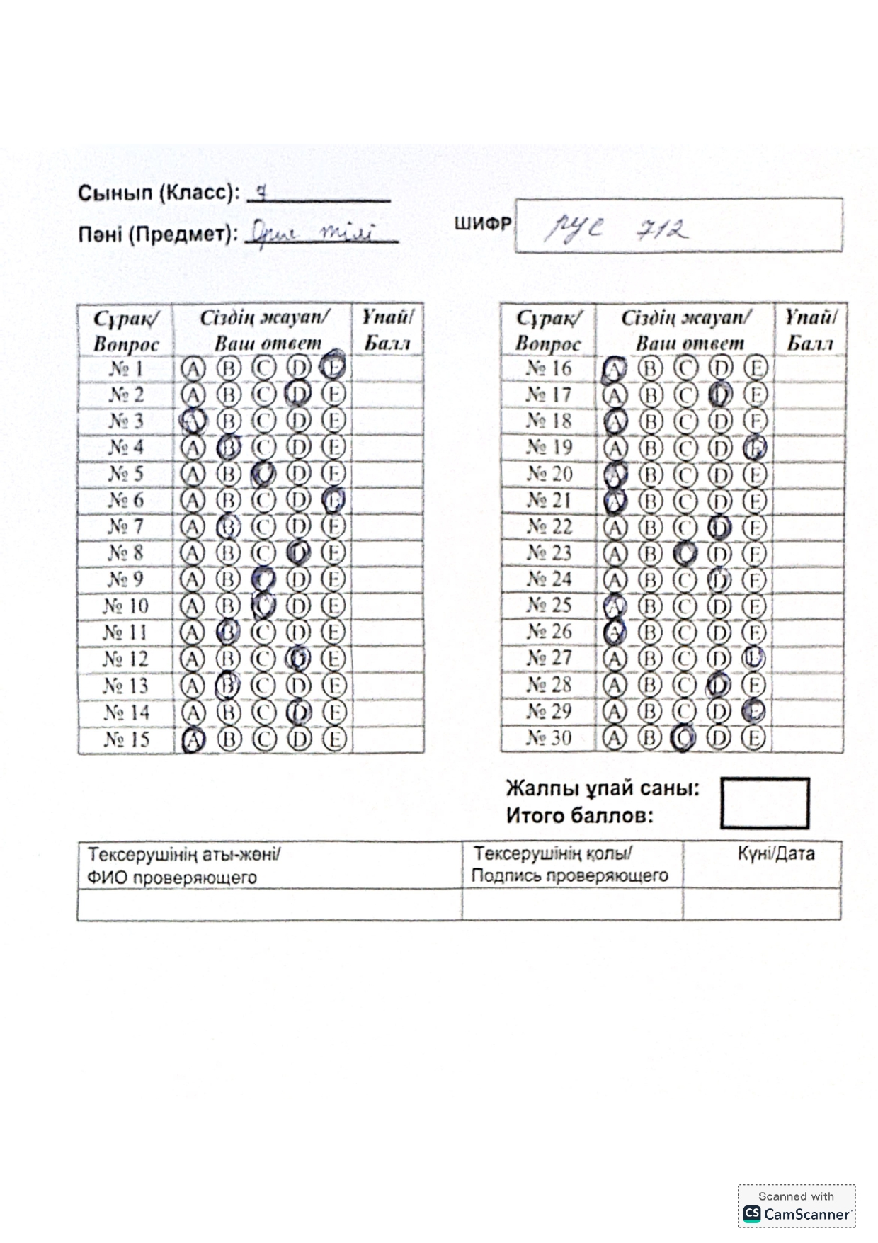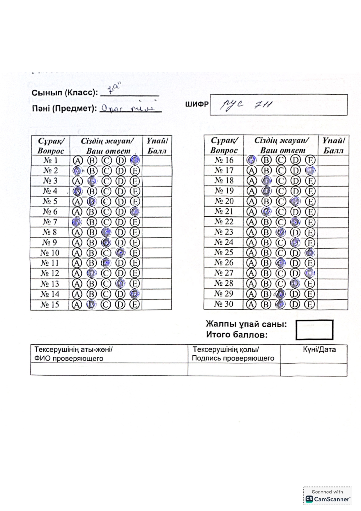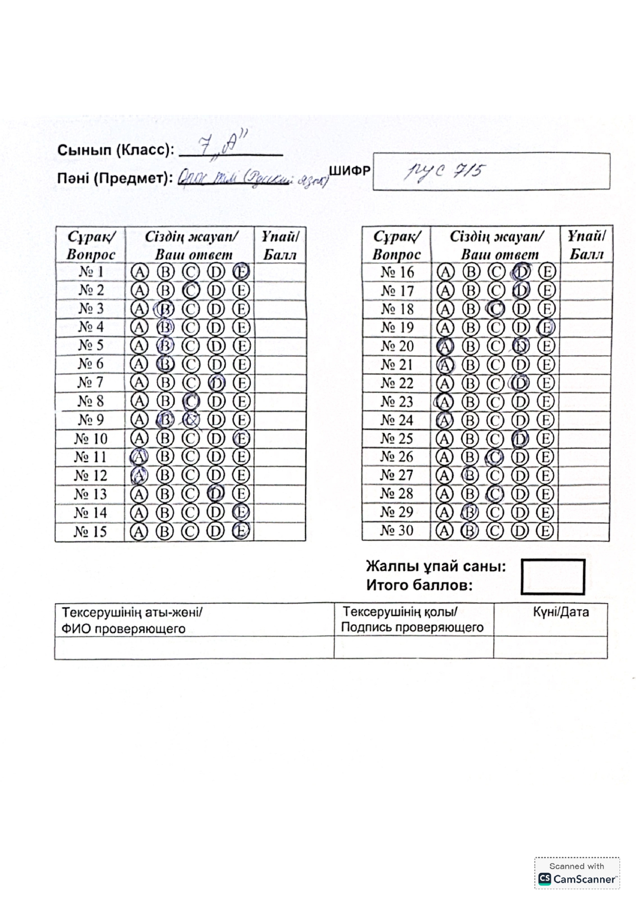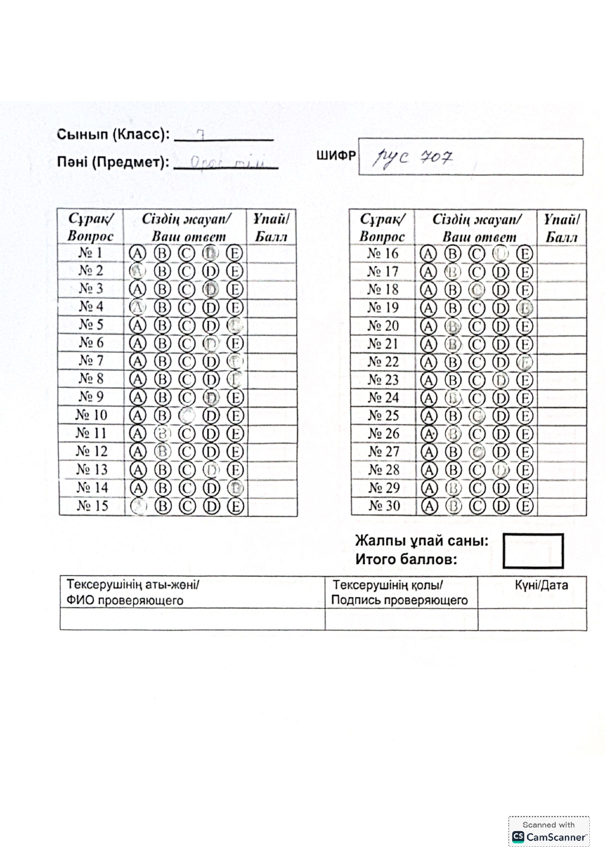 Жалпы білім беретін пәндер бойынша республикалық олимпиаданың аудандық кезеңі гуманитарлық бағыты 7 сынып ағылшын тілі